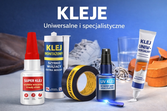 Kleje to niezbędne materiały pomocnicze wykorzystywane przy pracach dekoracyjnych, montażowych i rękodzielniczych. Umożliwiają trwałe łączenie różnych materiałów, zapewniając stabilność i estetykę wykonania.