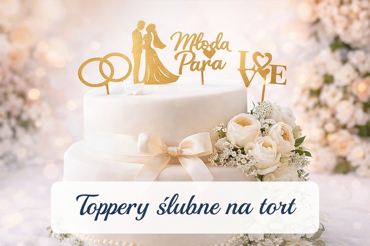 W tej kategorii znajdują się toppery zaprojektowane z myślą o tortach ślubnych – estetyczne, lekkie i dopasowane do różnych stylów weselnych, od klasycznych po nowoczesne. Różnorodność form i wzorów pozwala dobrać dekorację harmonijnie współgrającą z wyglądem tortu oraz motywem przewodnim przyjęcia.
